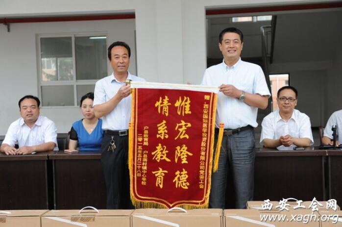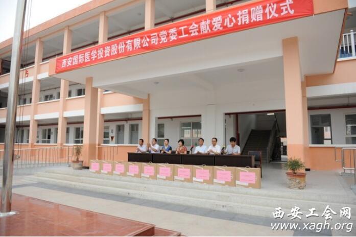 六一前夕,由西安市財貿(mào)工會、西安市教科文衛(wèi)工會和西安國際醫(yī)學(xué)投資股份有限公司聯(lián)合發(fā)起的“真情牽手、愛心助學(xué)”捐贈活動在戶縣蔣村鎮(zhèn)甘西小學(xué)進行。