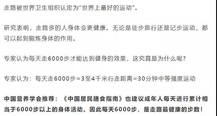但是不要盲目的“拼微信步數(shù)”,在健康的基礎(chǔ)上,有意識(shí)地加大、加快步伐,將運(yùn)動(dòng)融入生活、增加熱量消耗,讓走路這顆“長(zhǎng)壽藥”發(fā)揮最大效果。