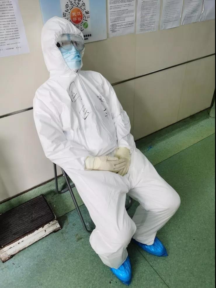 正月十五的夜,月兒很圓。實在太累了,得“秒”睡會兒。西安國際醫(yī)學(xué)中心醫(yī)院赴武漢醫(yī)療隊隊員正奮戰(zhàn)在武漢第八醫(yī)院的一間間病房里。隊員劉永平醫(yī)生已連續(xù)奮戰(zhàn)了三個多小時了,實在太累了,坐在凳子上都睡著了……這一幕正好被旁邊的同事拍到了。進入武漢第八醫(yī)院(卓爾長江應(yīng)急醫(yī)院)工作,醫(yī)療隊劉永平醫(yī)生每天穿梭在病房之間,和護理人員一起查房,詢問患者情況,制定診療方案,這一切場景在醫(yī)院里好像都是稀松平常。唯一不同的是,穿戴全套防護裝備的他,工作一兩個小時就需要停下來,喘口氣,然后再重新投入工作。