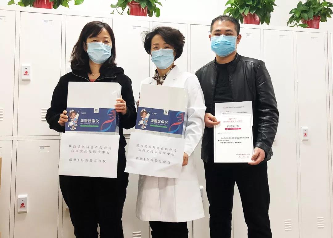 截至目前,西安國際醫(yī)學(xué)中心醫(yī)院收到社會各界捐款捐物:陜西省慈善協(xié)會捐款12萬元;交大醫(yī)學(xué)院2002級七年制抗擊疫情愛心小組捐贈Masimo 脈搏血氧測量儀2臺;陜西華杰醫(yī)療器械有限公司捐贈外科口罩1000只,醫(yī)用檢查手套1000雙,84消毒液2桶;西安標(biāo)準(zhǔn)工業(yè)股份有限公司捐贈電腦平縫機1臺;武漢大學(xué)校友聯(lián)誼會捐贈N95口罩500個;奧山集團有限公司捐贈84消毒液8桶;湖北卓爾公益基金會捐贈醫(yī)用防護服1000件;康途無界醫(yī)生集團捐贈檢查手套500雙,防護眼鏡10副,防護服50套;陜西聯(lián)創(chuàng)騰達機電工程有限公司捐贈84消毒液20桶;通力電梯有限公司西安分公司84消毒液150桶;陜西昊基科貿(mào)有限公司捐贈血管顯像儀2臺;西安捷裕昌醫(yī)療器械有限公司捐贈醫(yī)用外科口罩1100只,500毫升消毒液60瓶,84消毒液10桶,75%酒精5桶;華商報捐贈蔬菜200箱……
