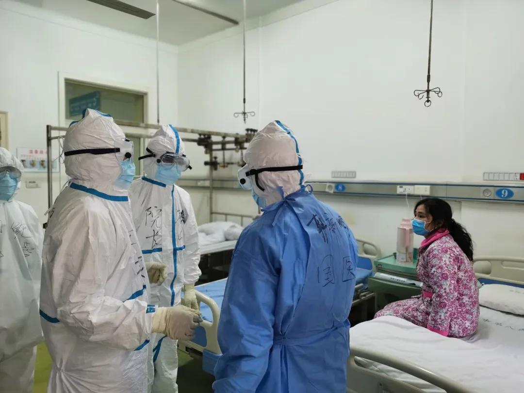這對(duì)夫妻的母親及姐姐一家四口,都因?yàn)樾鹿诓《痉窝鬃∵M(jìn)了武漢第八醫(yī)院一病區(qū),經(jīng)過(guò)韓主任及科室醫(yī)護(hù)人員的精心治療和護(hù)理,四個(gè)人病情均有好轉(zhuǎn)。今天妹妹、妹夫的各項(xiàng)檢查均符合出院指標(biāo),就要出院了。