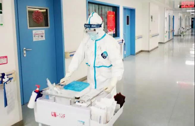 經(jīng)過40分鐘的車程、層層“武裝”后,我迅速投入工作狀態(tài):處理污染區(qū)垃圾、輸液、量體溫、抽血、協(xié)助患者服藥到口、執(zhí)行醫(yī)囑等等基礎(chǔ)操作和生活護(hù)理。身處一線的每一秒,我都在心里給自己默敲警鐘。責(zé)任所在,不容紕漏。清楚記得初上戰(zhàn)場時,盡管已進(jìn)行大量嚴(yán)格培訓(xùn),我仍感到有些緊張。但說來奇怪,當(dāng)我真正接觸到這些樂觀積極的患者時,一股油然而生的親切感、使命感平復(fù)了我的忐忑。