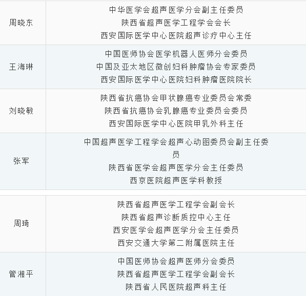 本次義診的醫(yī)護(hù)團(tuán)隊(duì)陣容不僅專業(yè)面廣而且水平高,僅超聲科就聚集了西安市各大醫(yī)院的超聲科主任一起深入基層為平利的女同胞們義診。他們是: