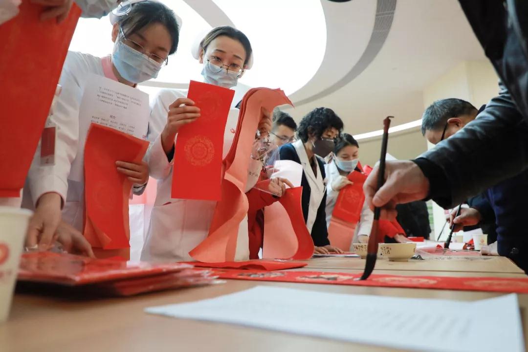 室外寒冬隆隆,室內(nèi)暖意融融,門診大廳人潮涌動。集五福,來西安國際醫(yī)學(xué)中心醫(yī)院!火紅的“福”字營造出喜慶祥和的氛圍,活動邀請了中國榜書家協(xié)會副主席兼中國社會藝術(shù)委員會副會長、中國榜書家協(xié)會陜西省分會主席雷婉萍及陜西省書法家協(xié)會、西安市書法家協(xié)會的名家和院內(nèi)書法愛好者們親筆書寫春聯(lián)。一幅幅金鉤鐵劃的春聯(lián)飽含真摯祝福,一個個飄逸靈動的漢字躍然紙上。除了傳統(tǒng)春聯(lián)還有新年新意,宣傳策劃部征集的原創(chuàng)春聯(lián)內(nèi)容積極向上,以新春祝福、歌頌西安國際醫(yī)學(xué)中心醫(yī)院為主題,溫暖的祝福送大家,受到一致好評。