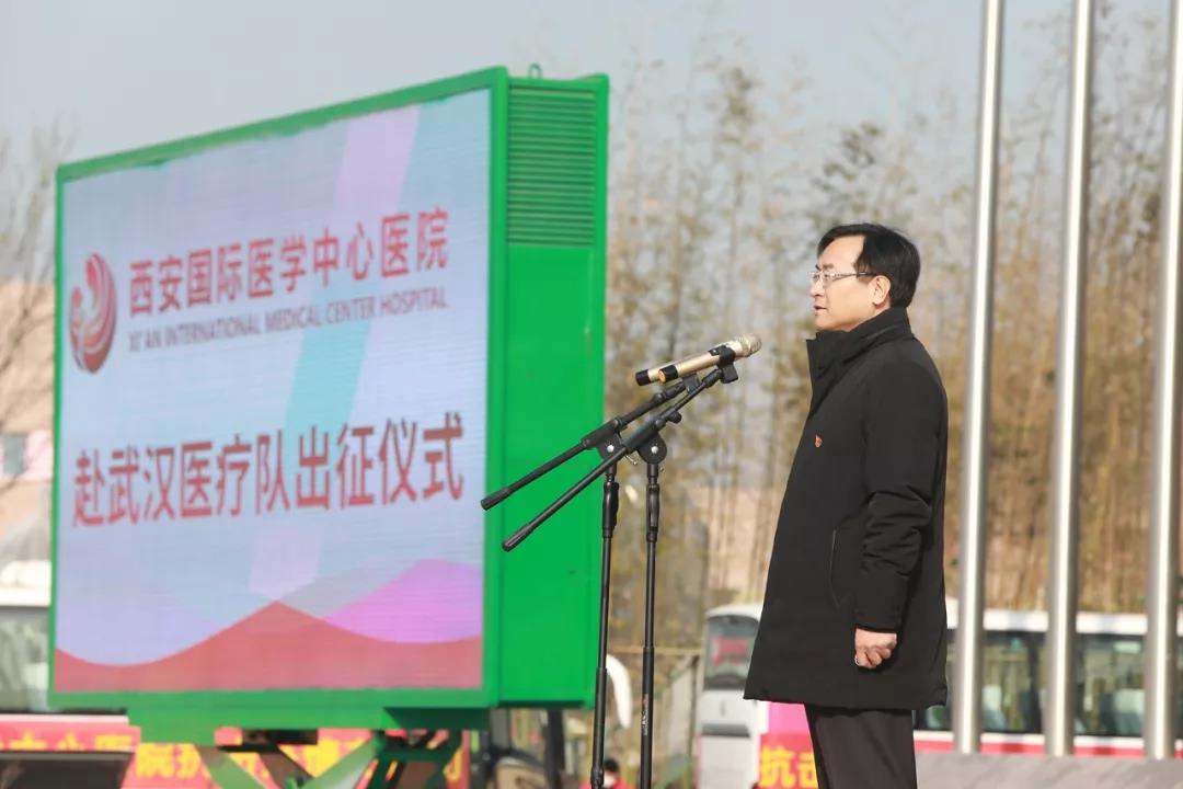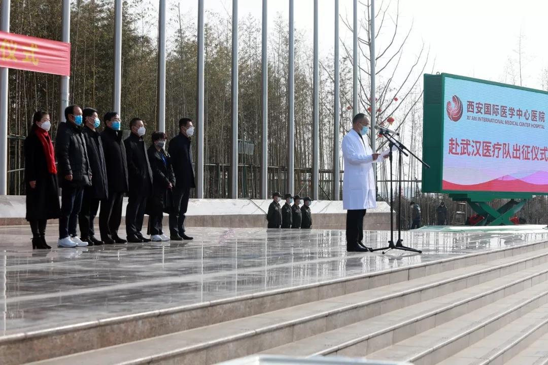 陜西省衛(wèi)健委黨組書記劉勤社說,我代表省委省政府應對新型冠狀病毒感染肺炎疫情工作領導小組和辦公室,為大家送行。西安國際醫(yī)學中心醫(yī)院率先擔當使命,主動組織醫(yī)療隊,感謝你們。希望大家堅定信心、同舟共濟、科學防治、精準施策,我們盼望大家凱旋歸來。