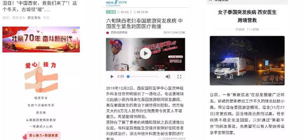 12月4日,西安國際醫(yī)學中心醫(yī)院醫(yī)護人員在西安咸陽國際機場的特殊通道嚴陣以待,中國駐泰國大使館多方協(xié)調(diào),春秋航空總部提供幫助,西安市人民政府外事辦公室啟動安全領事保護機制,西安咸陽機場海關通力協(xié)調(diào)、盡可能壓縮通關時長,西安咸陽國際機場運行控制協(xié)調(diào)中心鼎力支持,從泰國到西安,直到西安國際醫(yī)學中心醫(yī)院的救護車停在停機坪上……陜西省多家媒體多方報道、中央電視臺二套播報點贊,跨國救援的故事溫暖了西安城。
