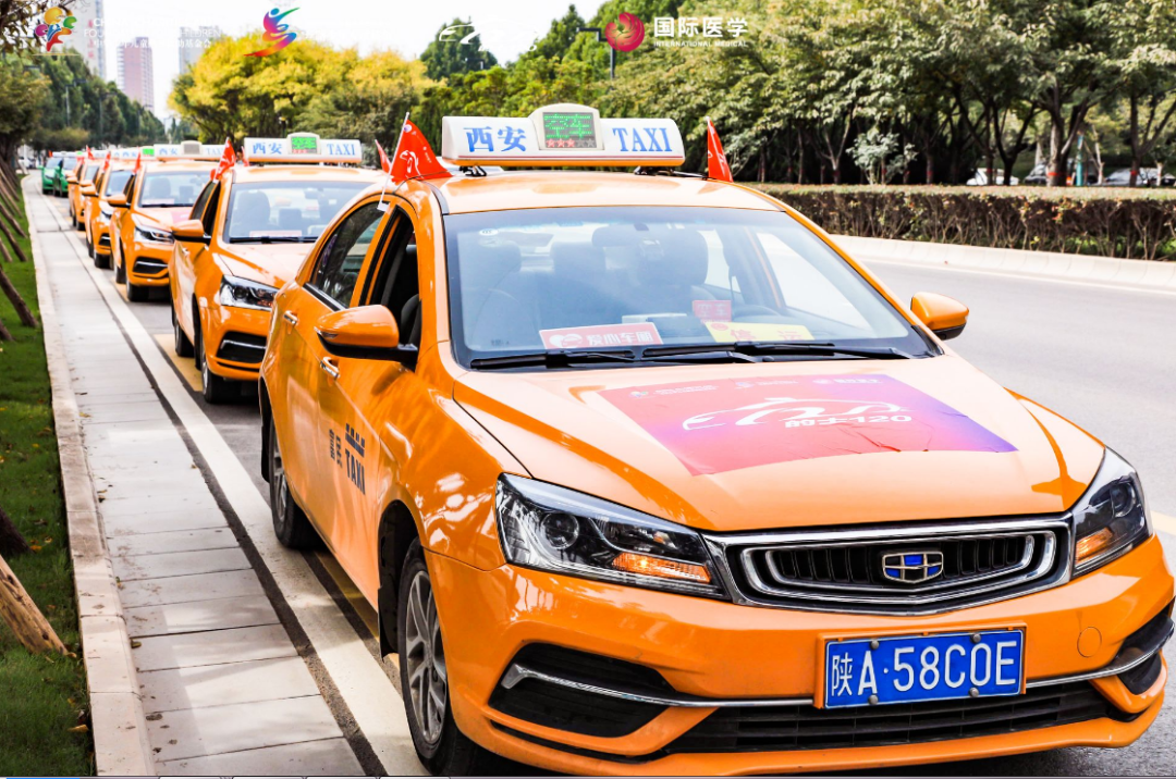 10月20日上午,在西安國際醫(yī)學中心醫(yī)院萬人廣場上,上百輛出租車匯聚在一起擺出“120”字樣,從空中俯瞰,場面十分壯觀。
