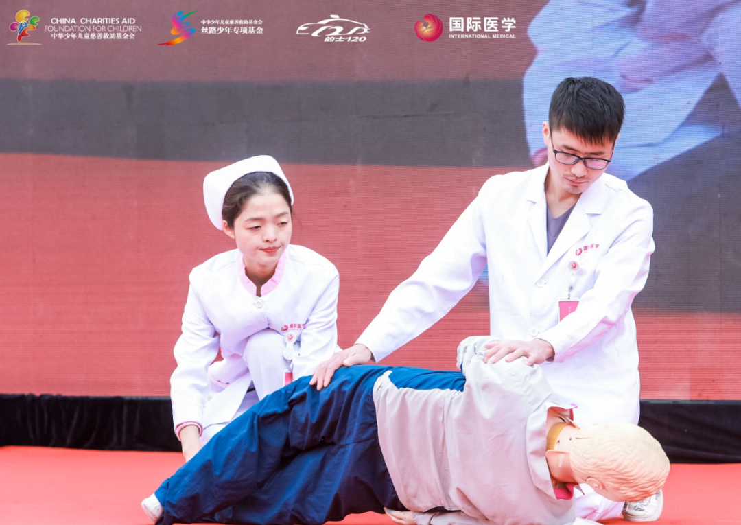 為提升志愿者們的救助能力,西安國際醫(yī)學中心醫(yī)院的醫(yī)生護士們現(xiàn)場演示了如何進行心肺復蘇,今后還將分批對志愿者們進行緊急救助知識方面的相關(guān)培訓。
