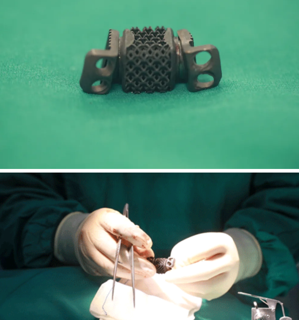 12月1日,西安國(guó)際醫(yī)學(xué)中心醫(yī)院骨科醫(yī)院脊柱外科賀西京團(tuán)隊(duì)為一位63歲脊髓型頸椎病伴不完全癱瘓的患者實(shí)施了頸4椎體椎間盤(pán)切除、3D打印Ti6Al4V合金可動(dòng)人工頸椎——椎間盤(pán)復(fù)合體植入術(shù)。