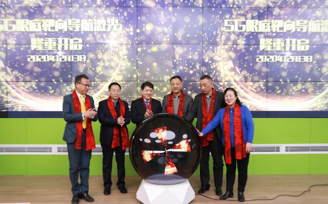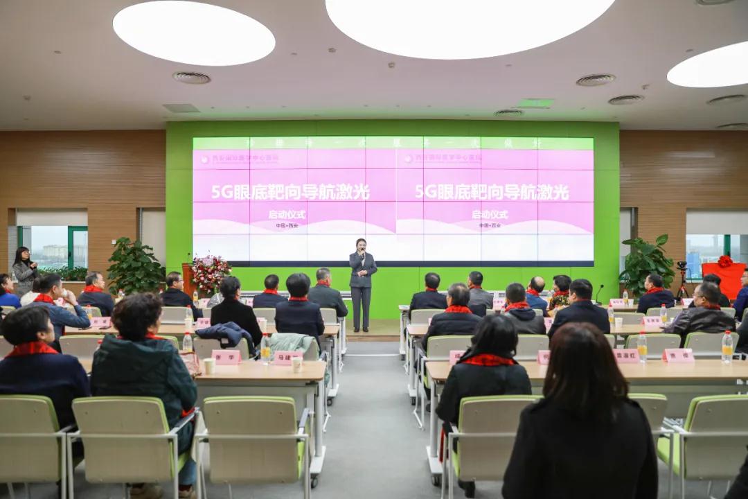 尹強院長、陳有信教授、嚴宏教授、王從毅教授、倪偉主任、朱琰經(jīng)理共同啟動“5G眼底導(dǎo)航激光”光球;陳有信教授、倪偉主任為“北京協(xié)和醫(yī)院與西安國際醫(yī)學(xué)中心醫(yī)院眼底靶向?qū)Ш郊す膺h程診療協(xié)作醫(yī)院”共同揭牌。