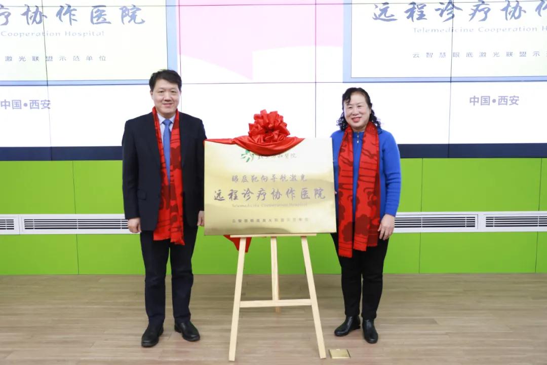 千里秦川傳捷報,寒風(fēng)浩蕩送佳音。2020年12月13日上午,西安國際醫(yī)學(xué)中心醫(yī)院眼科眼底靶向?qū)Ш郊す鈫蛹氨本﹨f(xié)和醫(yī)院與西安國際醫(yī)學(xué)中心醫(yī)院眼底靶向?qū)Ш郊す膺h程診療協(xié)作醫(yī)院揭牌儀式在西安國際醫(yī)學(xué)中心醫(yī)院舉行。這標(biāo)志著我院眼底激光治療進入智慧醫(yī)療時代,也是5G技術(shù)創(chuàng)新應(yīng)用在智慧醫(yī)療領(lǐng)域的又一次重大突破。醫(yī)院信息化與基礎(chǔ)通信深度融合的優(yōu)秀實踐,不僅助力醫(yī)院實現(xiàn)便捷高效的醫(yī)療服務(wù),更讓老百姓在當(dāng)?shù)鼐湍芟硎艿絿鴥?nèi)先進的診療水平。