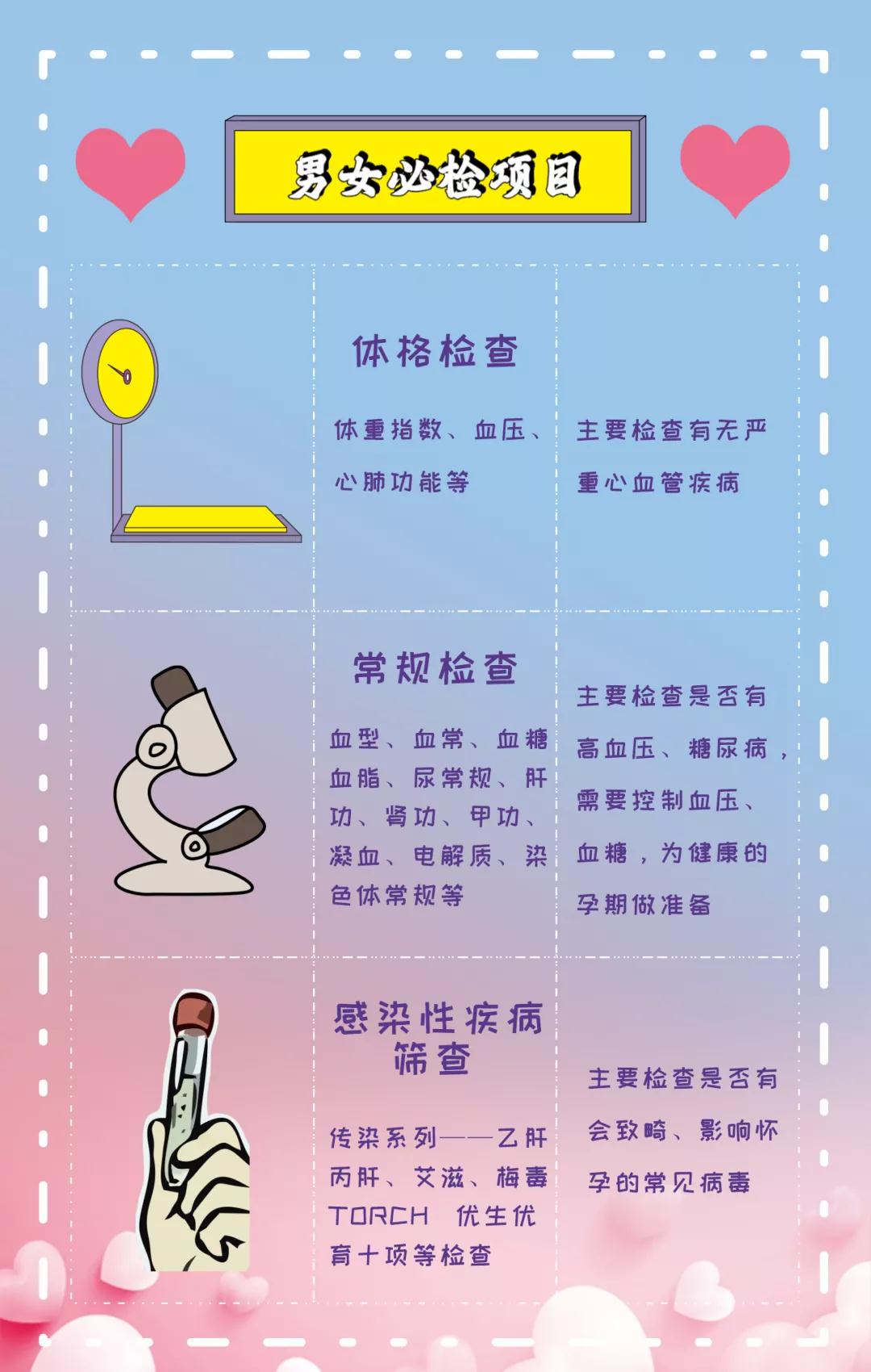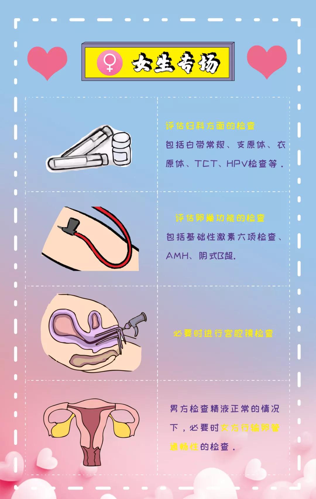 這些主要檢查生殖系統(tǒng)及器官是否有病變,“種子是否健康,土地是否肥沃”,“寶寶未來的家”是否“宜居”。如果發(fā)現(xiàn)問題就有足夠的時(shí)間進(jìn)行治療,以免一些疾病影響到卵子、精子的質(zhì)量以及后期備孕成功后對(duì)胚胎發(fā)育的影響甚至導(dǎo)致流產(chǎn)。