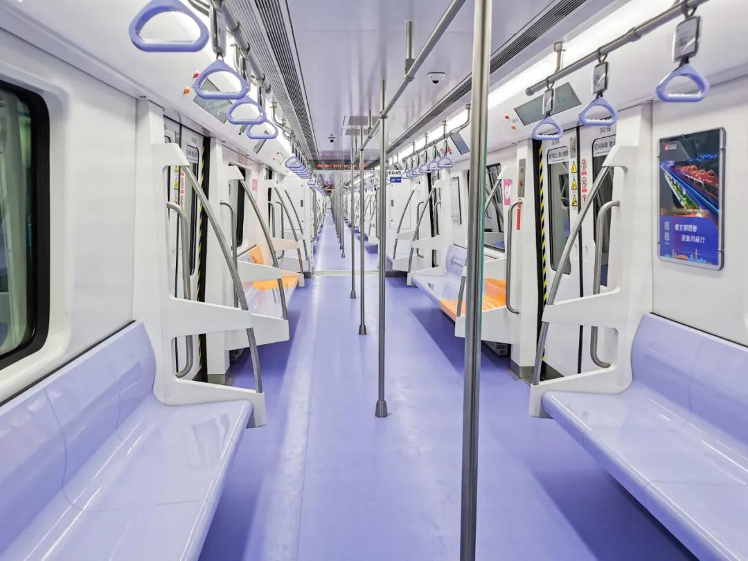 28日上午,小編乘坐開往西安國際醫(yī)學中心方向的6號線地鐵。該車車身腰線為一抹清新“星空藍”,車內(nèi)裝飾為點點淡雅“香芋紫”;車門上方的LCD顯示屏,既有整體線路、運行狀態(tài)等基本信息,也有列車抵達下一站的預計時間,更有站臺層扶梯、直梯與洗手間的位置等便民信息;橙黃色的愛心座椅自帶加熱功能,科技感十足,有顏值,更便捷!