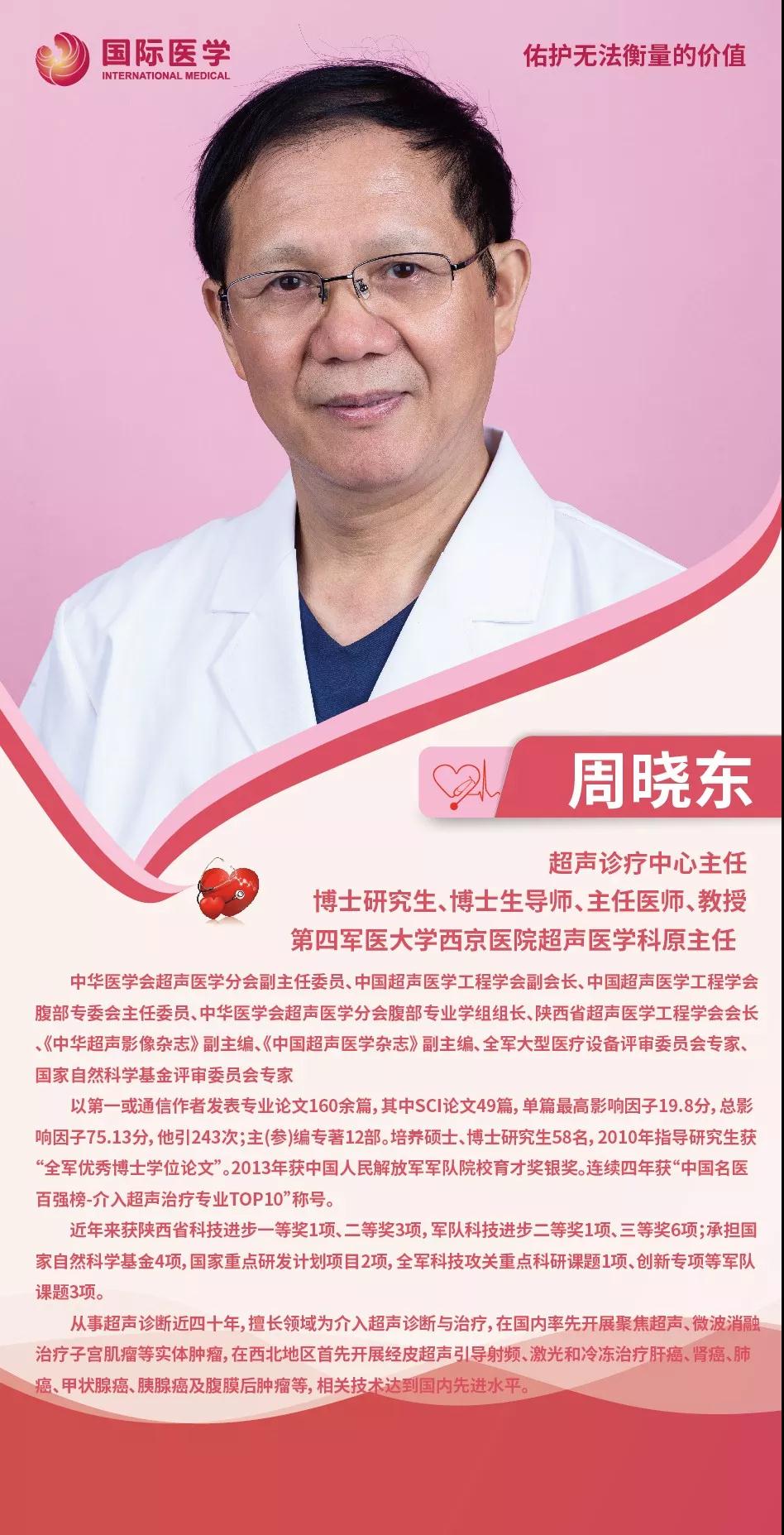周曉東,中華醫(yī)學(xué)會(huì)超聲醫(yī)學(xué)分會(huì)副主任委員、中國(guó)超聲醫(yī)學(xué)工程學(xué)會(huì)副會(huì)長(zhǎng)、陜西省超聲醫(yī)學(xué)工程學(xué)會(huì)會(huì)長(zhǎng)、第四軍醫(yī)大學(xué)西京醫(yī)院超聲醫(yī)學(xué)科原主任、現(xiàn)任西安國(guó)際醫(yī)學(xué)中心醫(yī)院超聲診療中心主任。