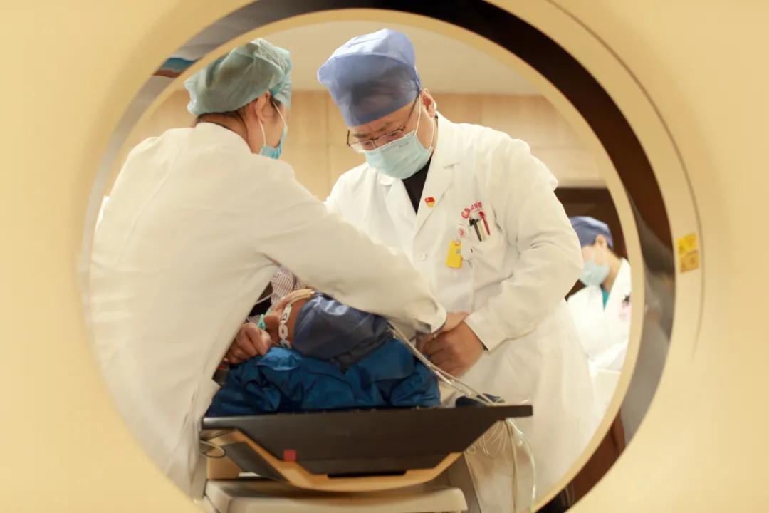 屈女士入院后肺穿刺活檢,進(jìn)一步證實(shí)了判斷?;颊呒凹覍僖笮杏曳尾≡钌漕l消融術(shù)。西安國(guó)際醫(yī)學(xué)中心醫(yī)院超聲診療中心周曉東主任與放射治療中心陸軍主任認(rèn)真研究,細(xì)心評(píng)估,為屈女士度身定制了“CT引導(dǎo)下右肺腺癌射頻消融術(shù)”治療方案,為肺癌的早診早治提供了新選擇。
