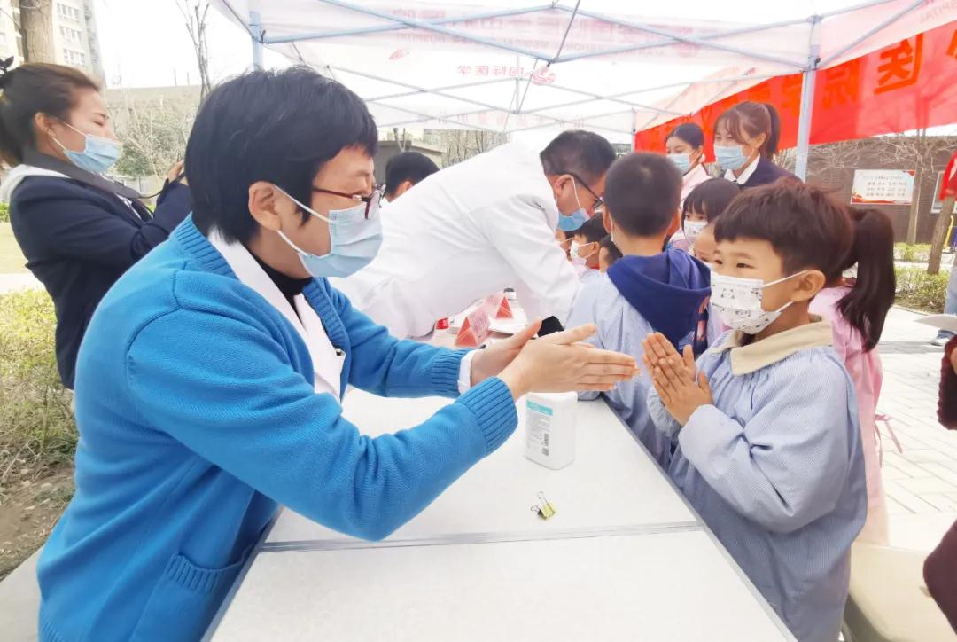 在創(chuàng)匯社區(qū)義診現(xiàn)場(chǎng),高新第八幼兒園的小朋友們?cè)卺t(yī)護(hù)人員的帶領(lǐng)下學(xué)做“洗手操”。醫(yī)生用通俗易懂的語(yǔ)言,詳細(xì)講解了洗手的重要性及如何正確洗手遠(yuǎn)離細(xì)菌等相關(guān)知識(shí),分步驟教會(huì)了小朋友們?nèi)绾握_洗手。同時(shí),醫(yī)護(hù)人員還為小朋友們介紹了體檢車(chē)的功能及用途,并帶領(lǐng)大家進(jìn)入體檢車(chē)參觀。