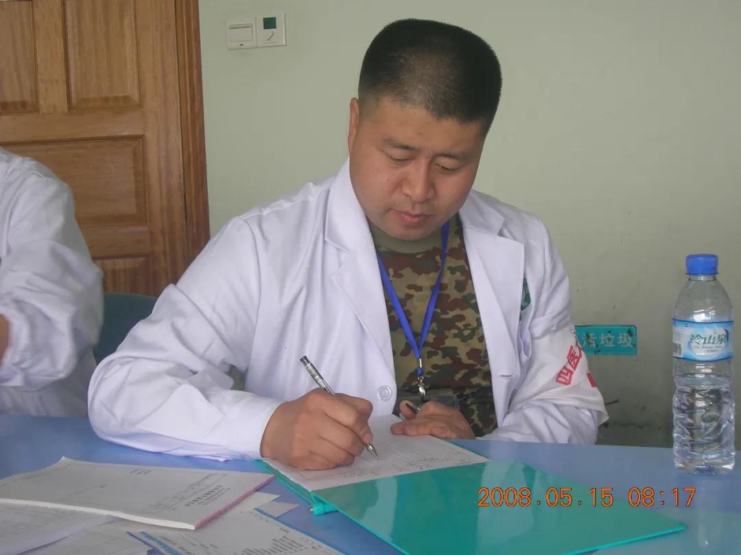 14時(shí)28分,山河破碎,天崩地裂,西安有強(qiáng)烈震感。李占亭撥開向室外沖的人潮,逆行進(jìn)入透析室,在天旋地轉(zhuǎn)中幫助尚在透析的患者下機(jī)。安置好患者,他才想起在唐都醫(yī)院家屬院的妻子和不滿2歲的幼女。“若有戰(zhàn),召必至”,當(dāng)天晚上,李占亭響應(yīng)號(hào)召,收拾行囊準(zhǔn)備出發(fā)。急救包、迷彩服、膠鞋、手電筒、巧克力、壓縮餅干、礦泉水、紙巾是他的裝備。沒有人知道他將面臨怎樣的危險(xiǎn)與挑戰(zhàn)。