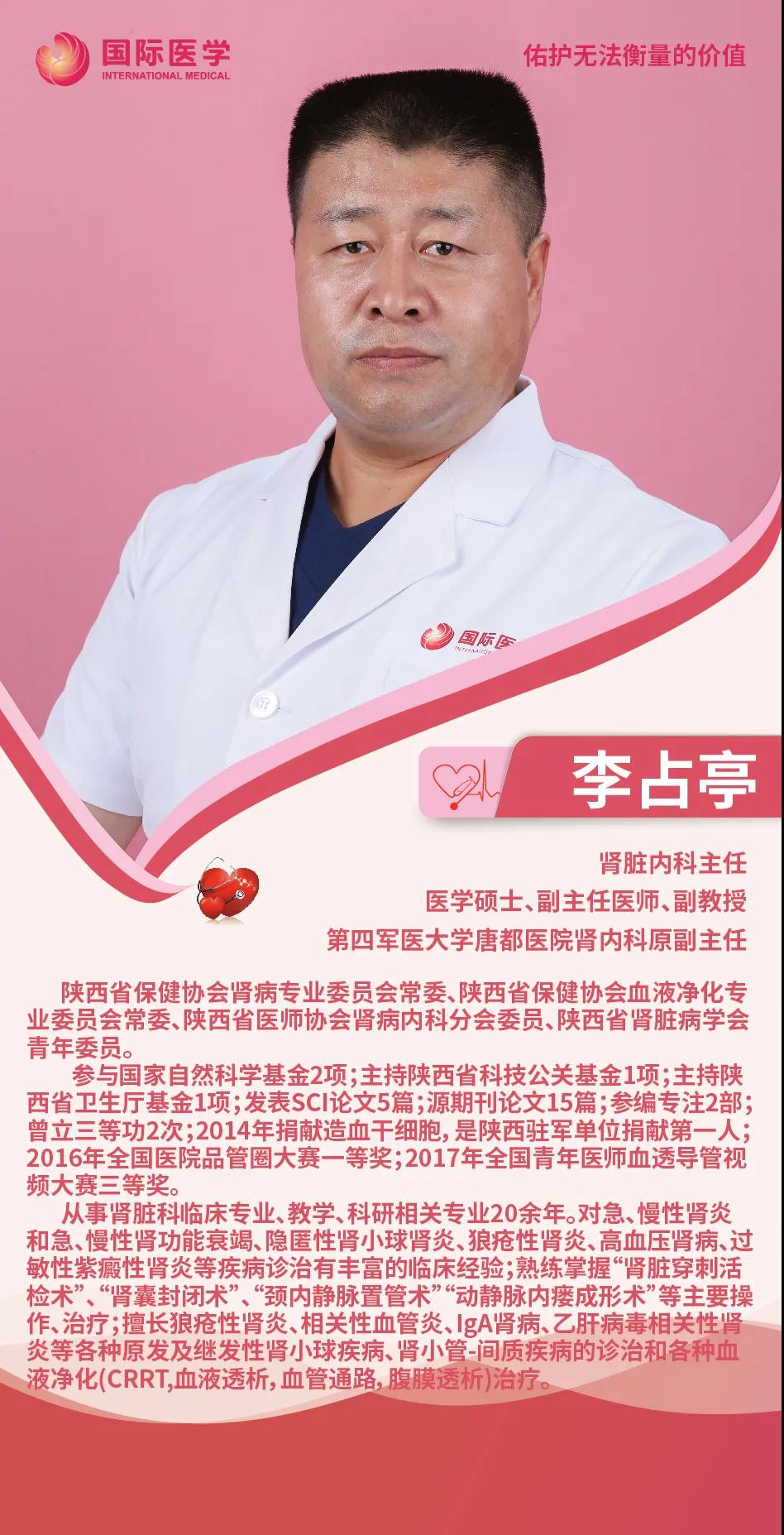 李占亭就是這里的“掌門人”——西安國際醫(yī)學(xué)中心醫(yī)院腎臟內(nèi)科主任。