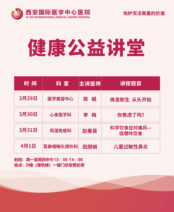 西安國際醫(yī)學(xué)中心醫(yī)院—青年醫(yī)師健康公益講堂預(yù)告