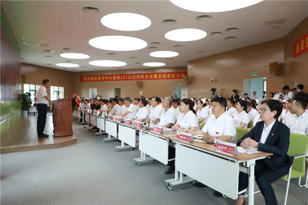 5月27日,西安國(guó)際醫(yī)學(xué)中心醫(yī)院舉行JCI認(rèn)證授牌儀式暨總結(jié)表彰大會(huì)。聯(lián)合委員會(huì)國(guó)際部總裁兼首席執(zhí)行官PaulaWilson ,聯(lián)合委員會(huì)國(guó)際部中國(guó)區(qū)主任、JCI評(píng)審(北京)有限公司副總經(jīng)理任暉,聯(lián)合委員會(huì)國(guó)際部JCI認(rèn)證組組長(zhǎng)孔雅雀,華潤(rùn)JCI研究院執(zhí)行院長(zhǎng)酈忠,西安國(guó)際醫(yī)學(xué)投資股份有限公司總裁劉瑞軒、副董事長(zhǎng)王愛(ài)萍、副總裁孫文國(guó)、副總裁王杲、孫義寬,西安國(guó)際醫(yī)學(xué)中心醫(yī)院院長(zhǎng)尹強(qiáng)、總經(jīng)理王志峰等領(lǐng)導(dǎo),各專(zhuān)科醫(yī)院院長(zhǎng)、主任、護(hù)士長(zhǎng)以及職工代表參加。