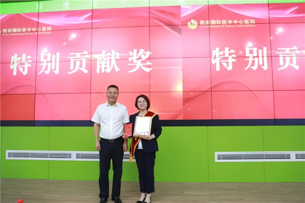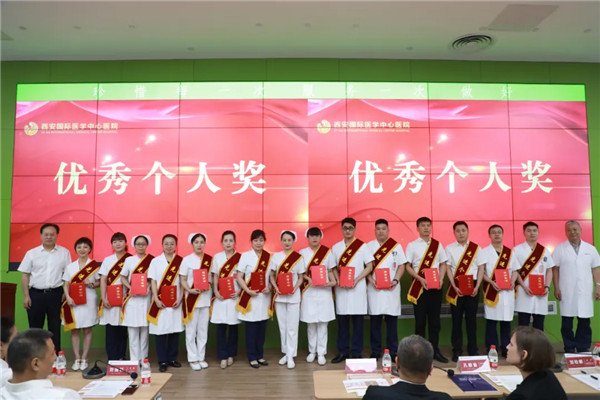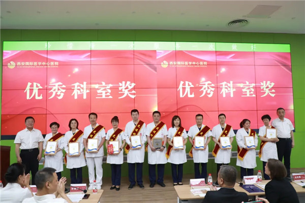 國(guó)際醫(yī)學(xué)集團(tuán)領(lǐng)導(dǎo)、西安國(guó)際醫(yī)學(xué)中心醫(yī)院領(lǐng)導(dǎo)分別為特別貢獻(xiàn)獎(jiǎng)、優(yōu)秀部門(mén)獎(jiǎng)、優(yōu)秀科室獎(jiǎng)、優(yōu)秀個(gè)人獎(jiǎng)的獲獎(jiǎng)集體及個(gè)人頒獎(jiǎng)。