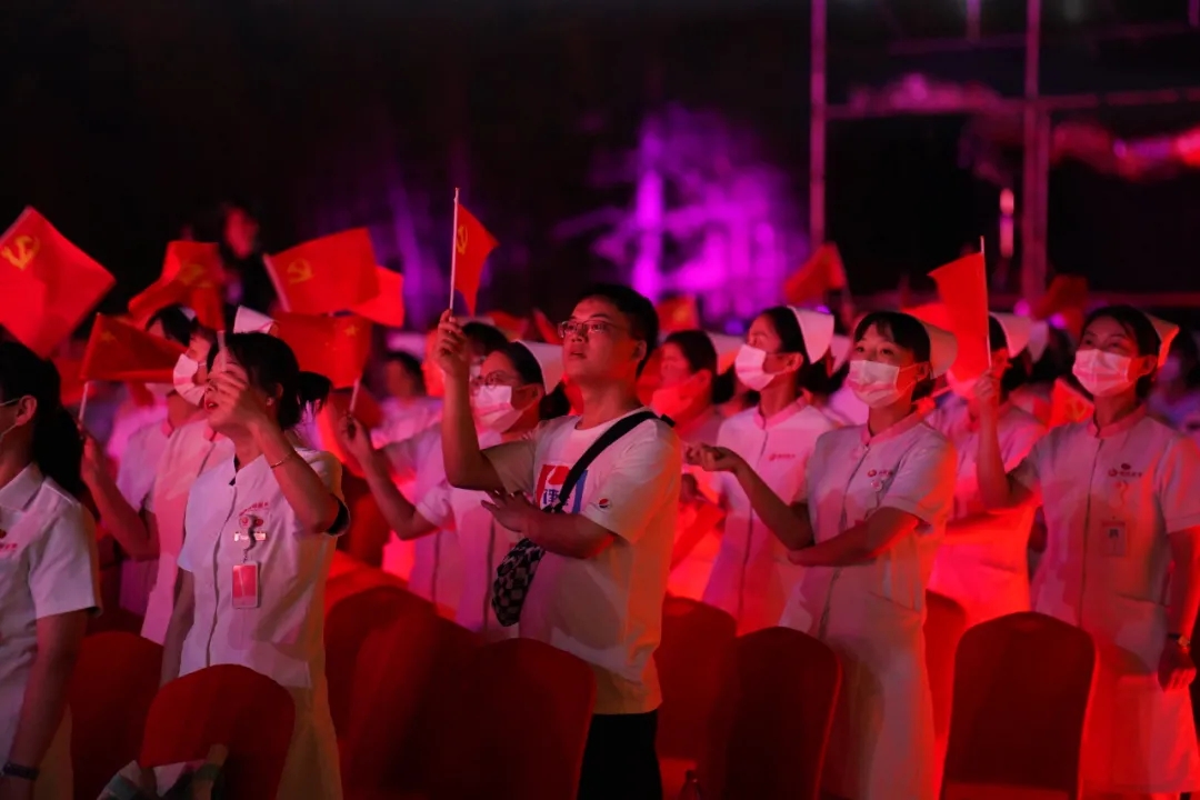 演出中,現(xiàn)場(chǎng)全體人員還共同觀看了《中國(guó)共產(chǎn)黨百年述職報(bào)告》,從中汲取精神力量,鼓舞大家奮勇前進(jìn)。