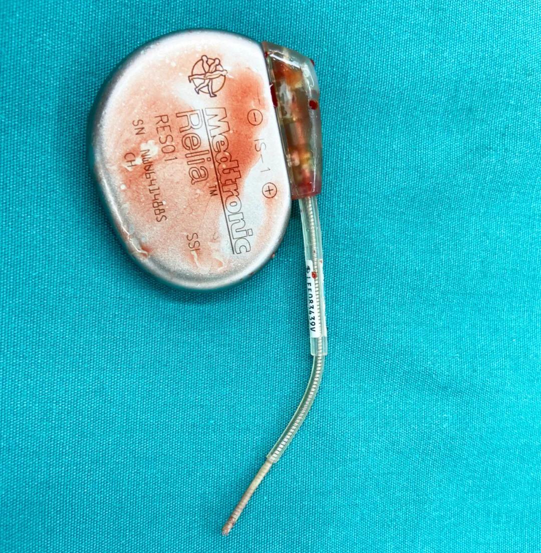 18歲的甜葵迎來了她人生中的第二次開胸體外循環(huán)手術。股動靜脈插管進行體外循環(huán)轉流保駕,搖擺鋸劈開胸骨,游離粘連心包,游離上下腔靜脈,插上腔直角插管,阻斷上下腔。切開右心房,可見起搏器纏繞在右心房內,導線從右心耳處穿出,進入心包腔,沿右側心包到達右前心包與膈肌交界,穿出心包腔,進入腹部皮下。張金洲副院長小心翼翼地在導線出右房處剪斷,一點點分離將電極從右心室心內膜拔出。心包外導線和隧道一并切除至膈肌處,檢查右心室內膜光滑,無破損,停止體外循環(huán)。雙氧水、碘伏、抗生素、生理鹽水反復沖洗起搏器囊袋和竇道,逐層縫合皮下組織和皮膚,手術順利完成。術后第二天拔除氣管插管,次日搬回普通病房。甜葵于6月10日轉至心臟內科一病區(qū),11日下午張衛(wèi)澤副院長為其安置永久起搏器,手術順利。