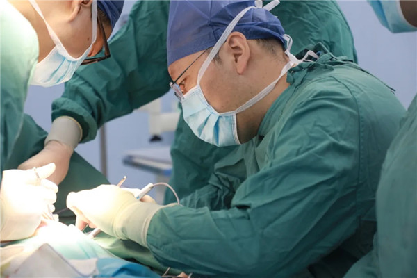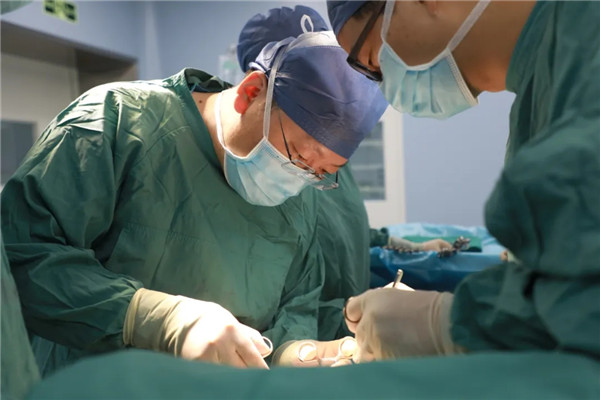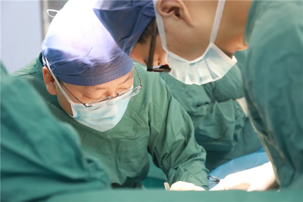 做好了充分準(zhǔn)備與預(yù)案,手術(shù)臺(tái)前的劉曉敏鎮(zhèn)定專注,在分離切斷王金花的甲狀腺懸韌帶后,他抽絲剝繭,一根根處理甲狀腺上極血管,繼而結(jié)扎切斷甲狀腺中、下的靜脈、動(dòng)脈,在由峽部切斷處起始分離甲狀腺背面時(shí),劉曉敏仔細(xì)辨認(rèn)喉返神經(jīng)和甲狀旁腺,確保不傷分毫。一般情況下,手術(shù)至此可以順利結(jié)束??赏踅鸹ㄊ俏焕淆g患者,由于氣管軟化,加上腫塊長(zhǎng)久壓迫,氣管就像失去回彈力的彈簧,從醫(yī)學(xué)角度看,患者已可以治愈,短期也無生命大礙,可彈不起來的“彈簧”還會(huì)重新聚攏在一起,讓老太太喘不上氣。一次手術(shù)能解決的問題,絕不讓患者再受二茬罪,劉曉敏又對(duì)王金花實(shí)施氣管懸吊術(shù),把“癱瘓”了的氣管朝兩邊拉起,給氣管留出足夠的空間出氣。