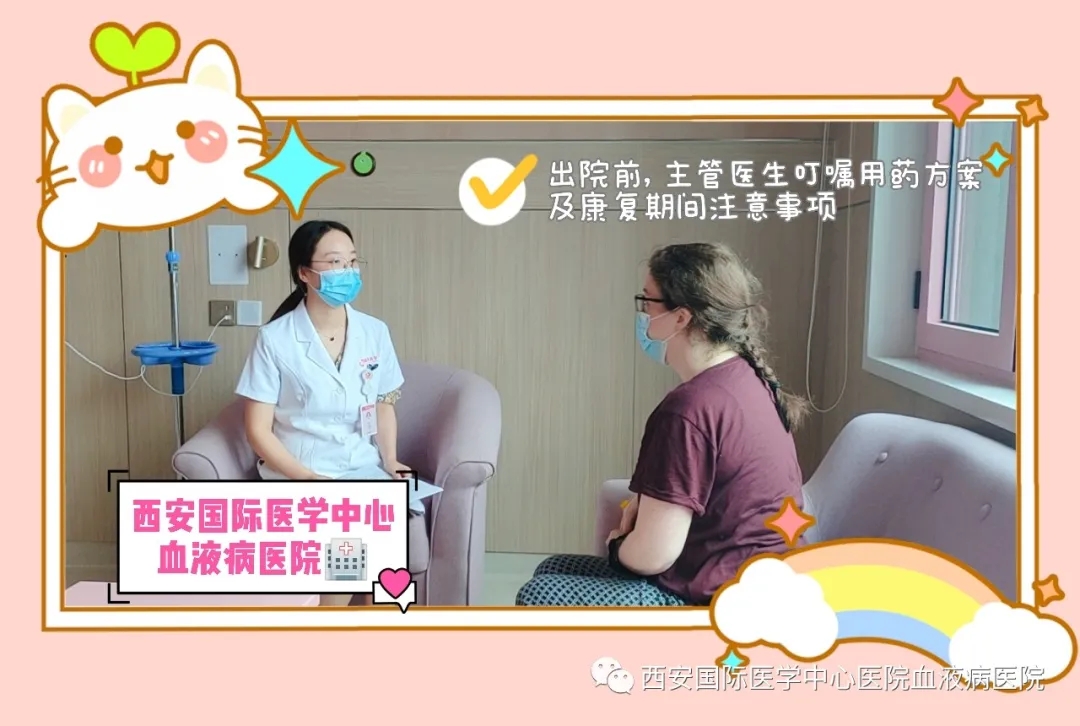 出院前,J女士再次來(lái)到護(hù)士站,對(duì)整個(gè)就醫(yī)過(guò)程表示非常滿意,尤其對(duì)黃斯勇主任以及韓妍醫(yī)師的負(fù)責(zé)敬業(yè)表示衷心感謝,為血液病醫(yī)院國(guó)際化的人才配備以及專(zhuān)業(yè)的醫(yī)療服務(wù)點(diǎn)贊。臨走時(shí),韓醫(yī)生反復(fù)叮囑J女士回家后要注意觀察病情,建議患者來(lái)院復(fù)診時(shí)要做婦科隨訪,針對(duì)病因持續(xù)治療。