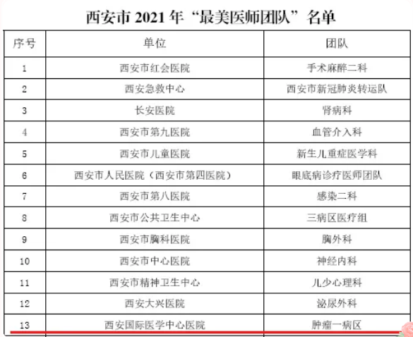 西安市衛(wèi)健委表彰了西安市2021年“最美醫(yī)師團隊”、“最美醫(yī)師”。腫瘤一病區(qū)榮獲西安市2021年“最美醫(yī)師團隊”,胸科醫(yī)院韓新鵬、腦科醫(yī)院馬濤榮獲西安市2021年“最美醫(yī)師”。