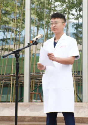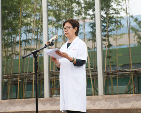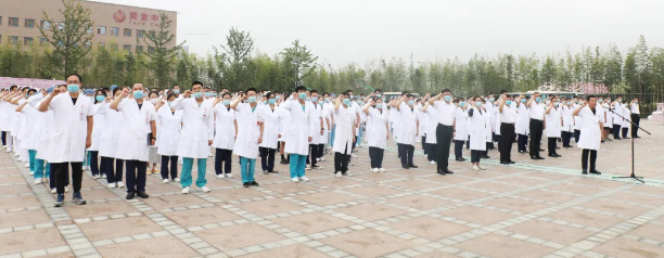 最后,劉延彤院長(zhǎng)助理帶領(lǐng)全體新入職員工舉起右手,莊嚴(yán)宣誓,鏗鏘有力的誓言在萬人廣場(chǎng)久久回蕩。