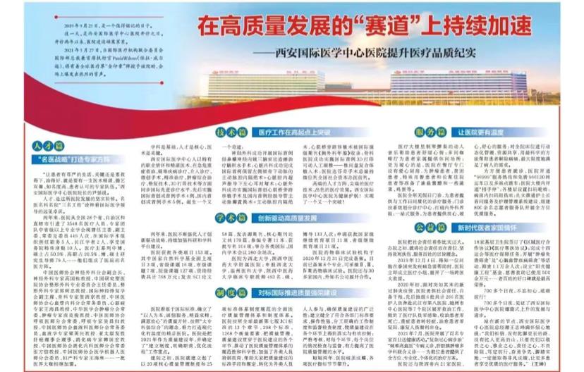 編者按:今日,《陜西日報》A8版刊登了醫(yī)院提升醫(yī)療品質(zhì)紀(jì)實的長篇報道,從人才、技術(shù)、制度、學(xué)術(shù)、服務(wù)、公益等方面,全方位展示了醫(yī)院兩年來的發(fā)展進程。