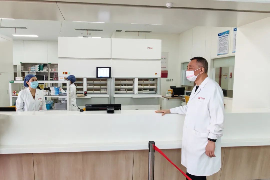 5月1日上午,尹強(qiáng)院長(zhǎng)來(lái)到門診、收費(fèi)處、藥房等重點(diǎn)區(qū)域,督導(dǎo)疫情防控措施及診療工作,并向堅(jiān)守崗位的醫(yī)護(hù)人員致以節(jié)日的問(wèn)候。每到一處,尹強(qiáng)院長(zhǎng)都與醫(yī)護(hù)人員親切交談,大家倍感溫暖與鼓舞,紛紛表示,一定立足本職,堅(jiān)守崗位,認(rèn)真做好節(jié)日期間的疫情防控及醫(yī)療工作。