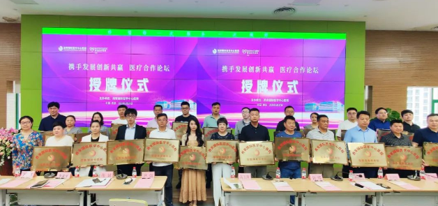 隨后尹強(qiáng)院長(zhǎng)與各機(jī)構(gòu)代表完成合作簽約儀式,李武平副院長(zhǎng)、張斌副院長(zhǎng)為參會(huì)的各家醫(yī)療機(jī)構(gòu)授牌并合影留念。