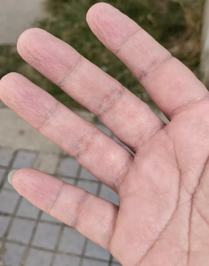 泡白的雙手,濕透的衣服……