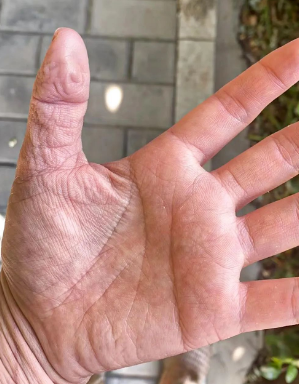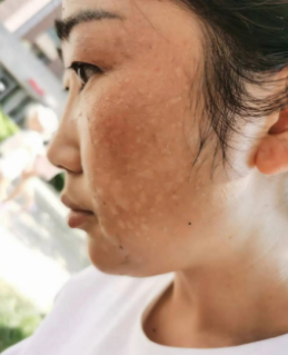 (被太陽(yáng)曬起皮的額頭)