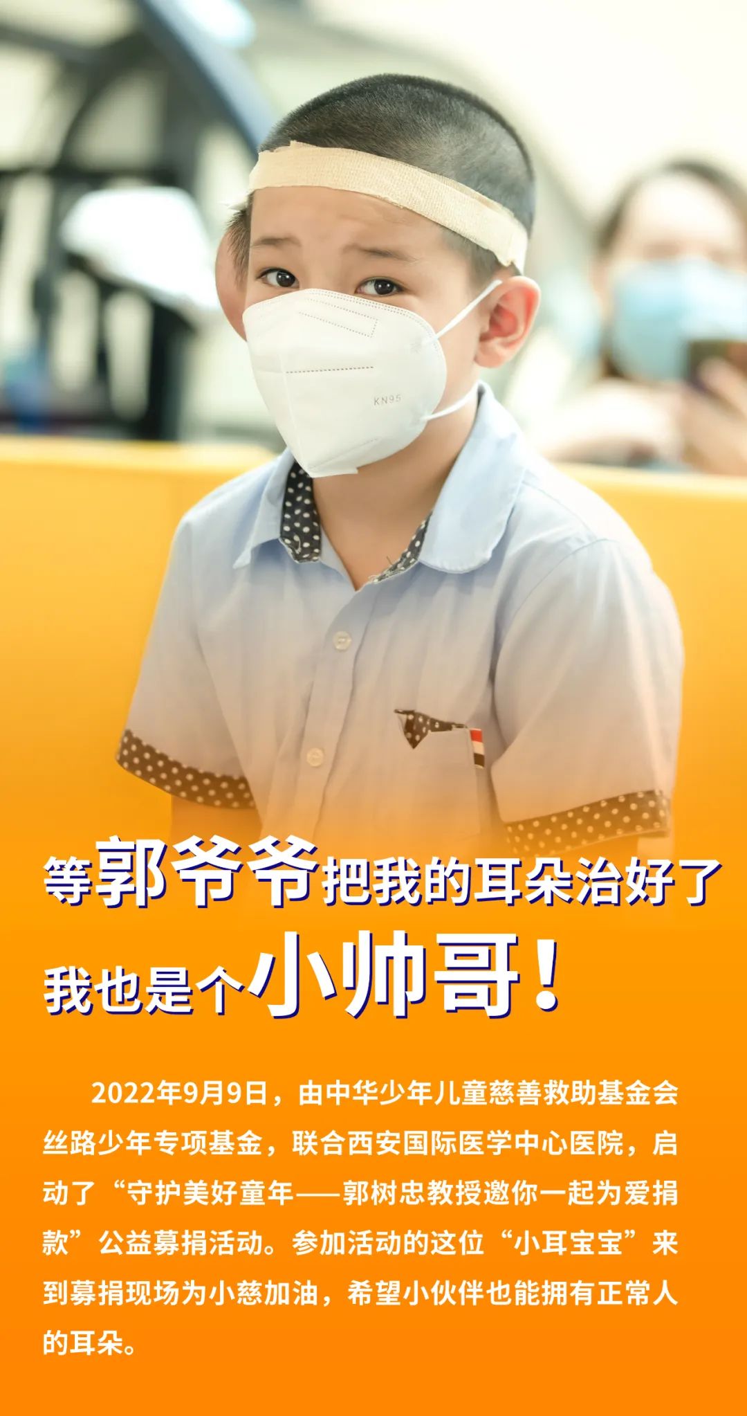 為了使更多“先天重疾兒童”恢復(fù)健康、快樂成長,9月9日,由中華少年兒童慈善救助基金會絲路少年專項基金,聯(lián)合西安國際醫(yī)學(xué)中心醫(yī)院,全面啟動了“守護(hù)美好童年——郭樹忠教授邀你一起為愛捐款”公益募捐活動。