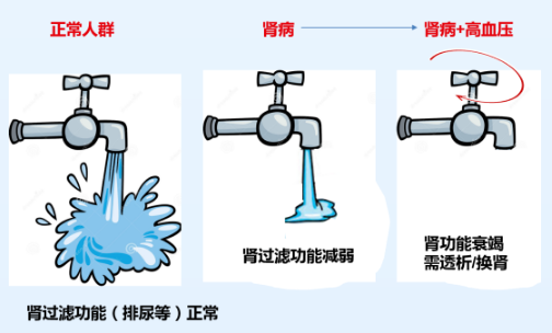 高血壓合并腎病會讓腎臟濾過率減弱,最終導(dǎo)致腎功能衰竭需要透析治療。