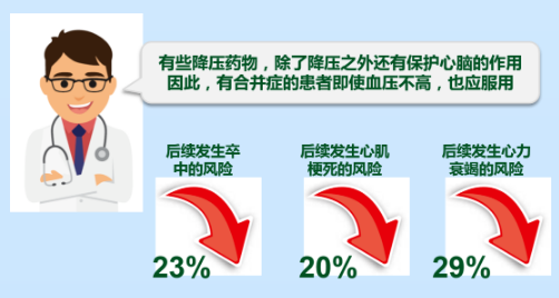 除了降血壓,降壓藥物還有心血管保護(hù)作用。有冠心病、腦卒中等合并癥的患者,哪怕血壓不高,也應(yīng)服用降壓藥物保護(hù)心腦血管。