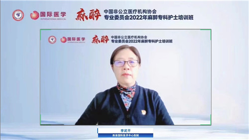 全國(guó)非公立醫(yī)療機(jī)構(gòu)協(xié)會(huì)護(hù)理分會(huì)副會(huì)長(zhǎng)、西安國(guó)際醫(yī)學(xué)中心醫(yī)院副院長(zhǎng)李武平主持麻醉??谱o(hù)士線上培訓(xùn)。清華大學(xué)長(zhǎng)庚醫(yī)院涂淑敏、北京大學(xué)國(guó)際醫(yī)院趙欣、北京大學(xué)人民醫(yī)院何苗、徐州醫(yī)科大學(xué)護(hù)理學(xué)院周芳教授、西京醫(yī)院麻醉科黃朝旭護(hù)士長(zhǎng)分別授課,解析麻醉護(hù)理工作重點(diǎn)、為麻醉護(hù)理人才建設(shè)提供建議。