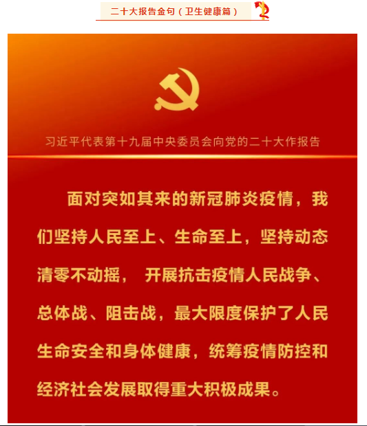 十載成就鼓舞人心,宏偉藍(lán)圖催人奮進(jìn)。西安國(guó)際醫(yī)學(xué)中心醫(yī)院黨委將把學(xué)習(xí)宣傳貫徹黨的二十大精神作為頭等大事,把思想和行動(dòng)迅速統(tǒng)一到黨的二十大精神上來(lái),深刻領(lǐng)會(huì)二十大報(bào)告中提出的新思想、新觀點(diǎn)、新目標(biāo)、新舉措,在新征程上,西安國(guó)際醫(yī)學(xué)中心醫(yī)院全體黨員、群眾將把學(xué)習(xí)宣傳貫徹黨的二十大精神與學(xué)習(xí)貫徹習(xí)近平總書記來(lái)陜考察重要講話重要指示精神和對(duì)衛(wèi)生健康工作的一系列重要指示批示精神相結(jié)合,踔厲奮發(fā)、勇毅前行、團(tuán)結(jié)奮斗,為推進(jìn)醫(yī)院高質(zhì)量發(fā)展和健康中國(guó)建設(shè)貢獻(xiàn)智慧和力量!