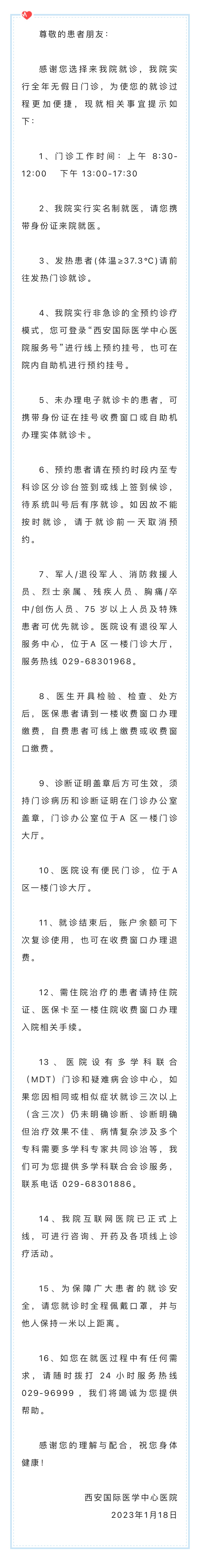 西安國際醫(yī)學中心醫(yī)院就診須知