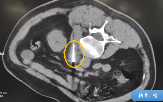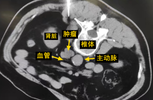 經(jīng)過多學(xué)科討論,陳寶瑩主任根據(jù)影像資料指出,患者轉(zhuǎn)移瘤位于腹膜后,內(nèi)側(cè)瀕臨人體最大的血管——主動脈;前方同樣有血管緊貼腫瘤;外側(cè)是腎臟,后方是椎體和神經(jīng),夾縫中進針難度大,治療時要避免周圍重要臟器、血管和神經(jīng)的損傷,因此可以選擇CT引導(dǎo)下精準(zhǔn)穿刺活檢同步冷凍消融治療,即獲得病理組織有利于下一步全身治療方案的調(diào)整,同時殺死腹膜后轉(zhuǎn)移瘤,周圍正常組織損傷的可能性也小。