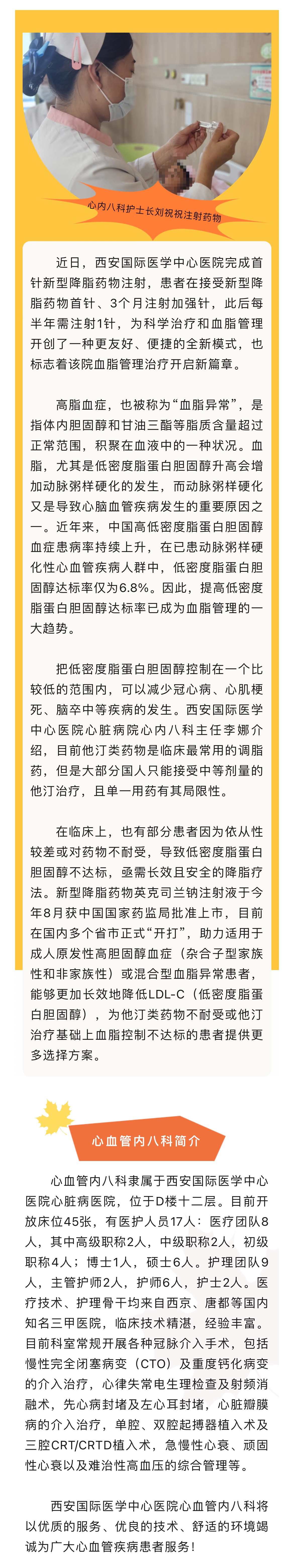 一年2針降脂!西安國際醫(yī)學(xué)中心醫(yī)院完成首針新型降脂藥物注射
