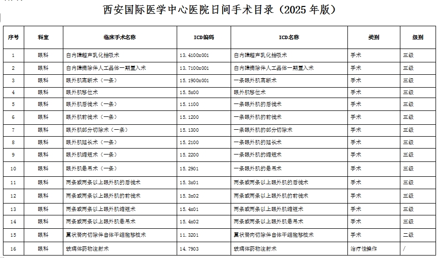 為進(jìn)一步加強(qiáng)本院日間診療管理,規(guī)范日間診療服務(wù)行為,保障日間醫(yī)療質(zhì)量與安全,按照《醫(yī)療機(jī)構(gòu)日間醫(yī)療質(zhì)量管理暫行規(guī)定》、《手術(shù)質(zhì)量安全提升行動方案(2023—2025年)》、《提升醫(yī)療質(zhì)量安全行動計劃(2023-2025年)》等各類文件要求,現(xiàn)將本院2025年度日間手術(shù)目錄公示如下: