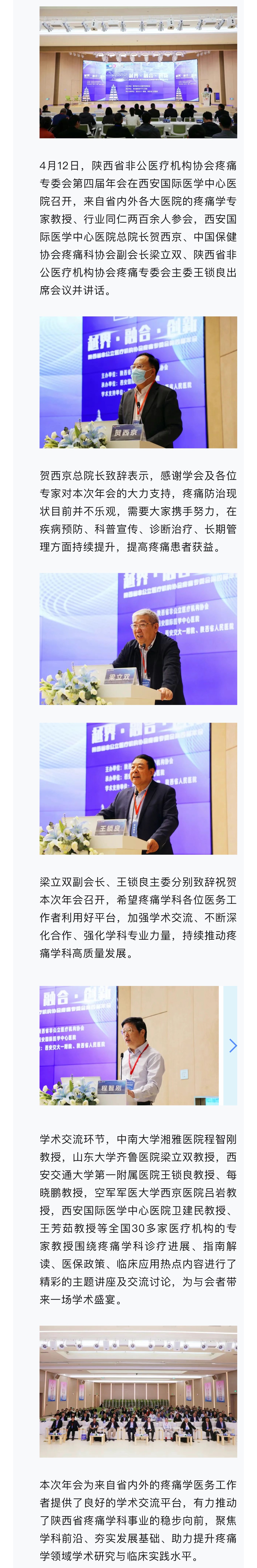 陜西省非公醫(yī)療機構協(xié)會疼痛專委會第四屆年會在我院召開