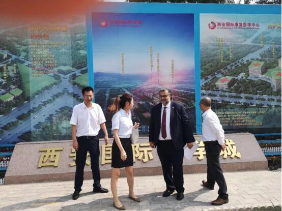 塔伊布-夏爾先生一行人在參觀西安國際醫(yī)學中心在建項目國際生殖醫(yī)學中心期間,孫文國副總裁向客人詳細介紹了國際醫(yī)學概況及公司發(fā)展戰(zhàn)略、建設國際醫(yī)學城的構想,強調(diào)隨著公司在醫(yī)療服務行業(yè)的深度發(fā)展,未來對醫(yī)護人才需求將持續(xù)加大,公司希望能與國際一流的院校及早展開合作,在學科建設、人才培養(yǎng)等方面為公司未來的健康運營做好充裕準備。